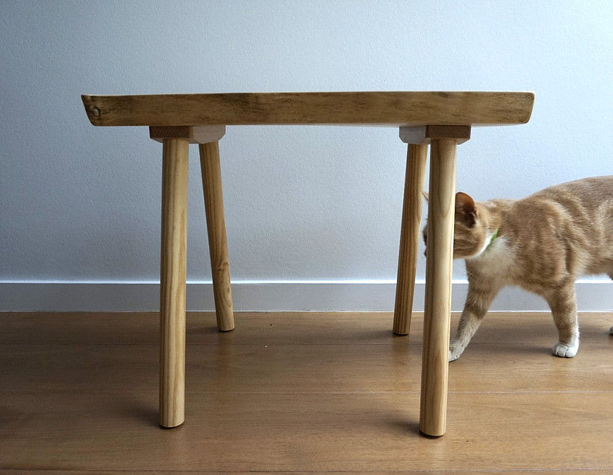 Set van drie bijzettafels - gerestaureerde eiken onderstellen